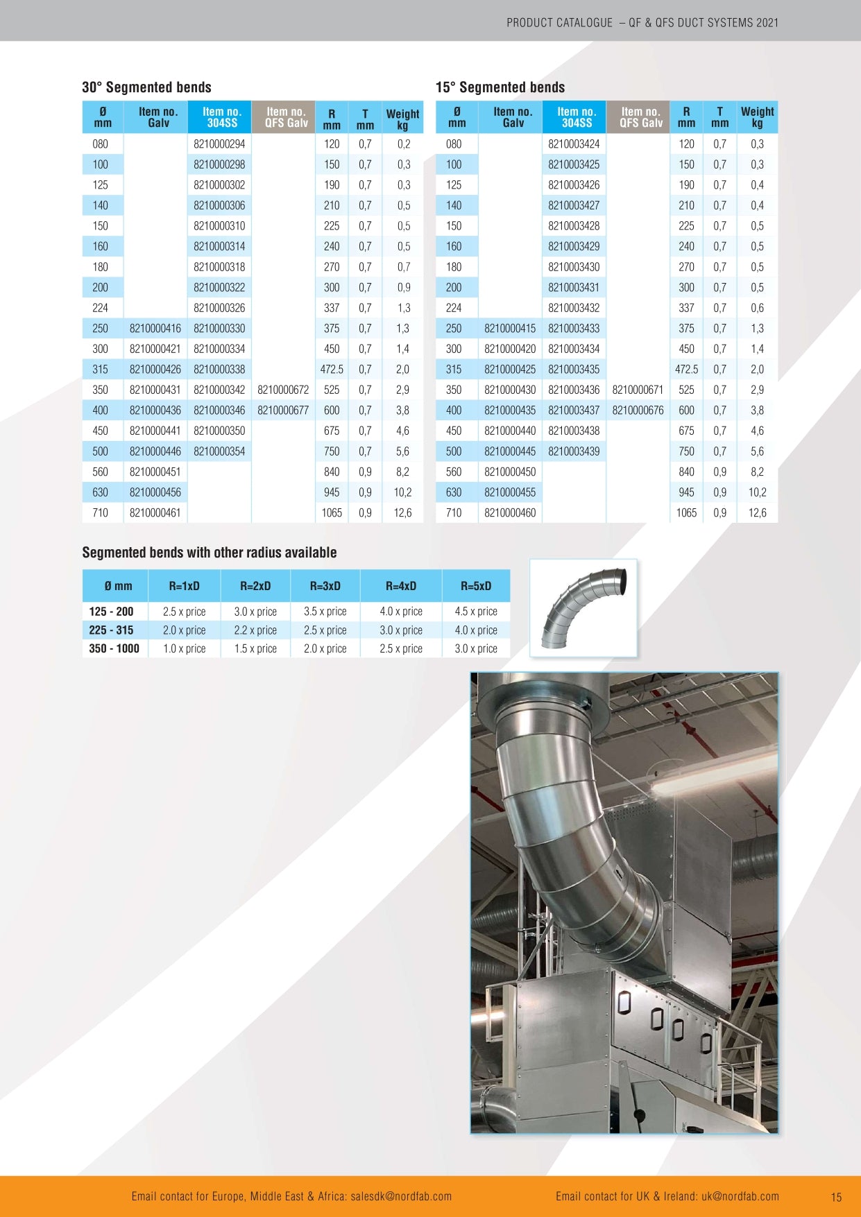 QF Segmented Bends – Available in sizes from 300mm to 710mm with thickness options of 0.7mm or 0.9mm.
